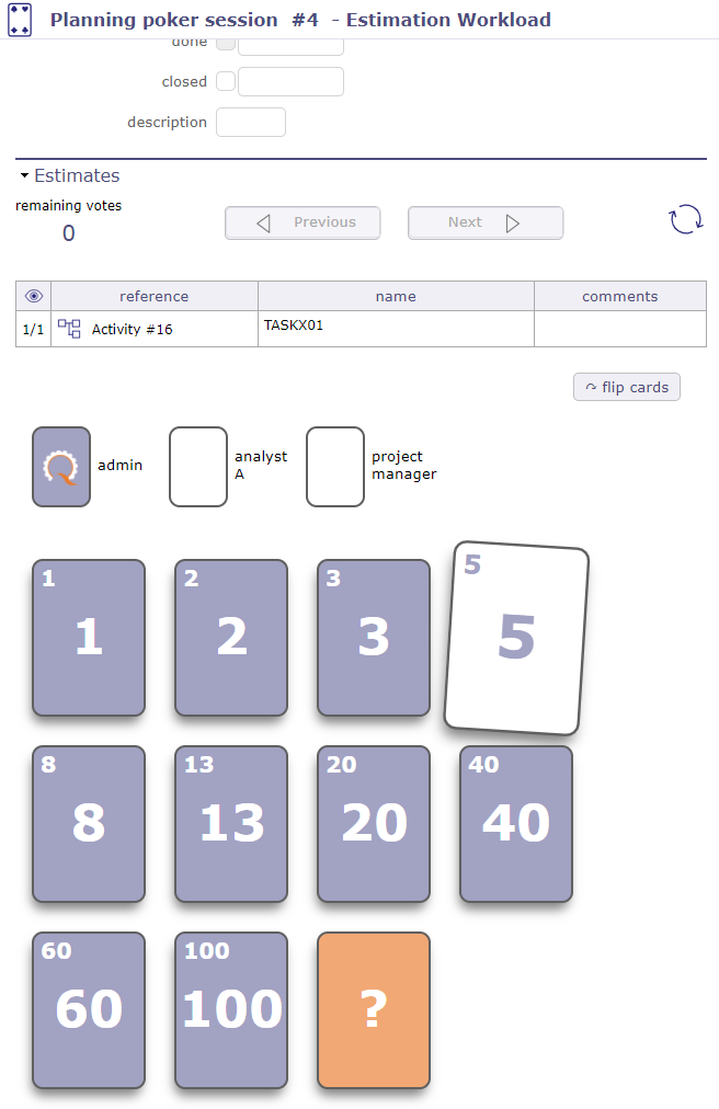 When you turn over the cards, the vote is indicated on each participant’s card.